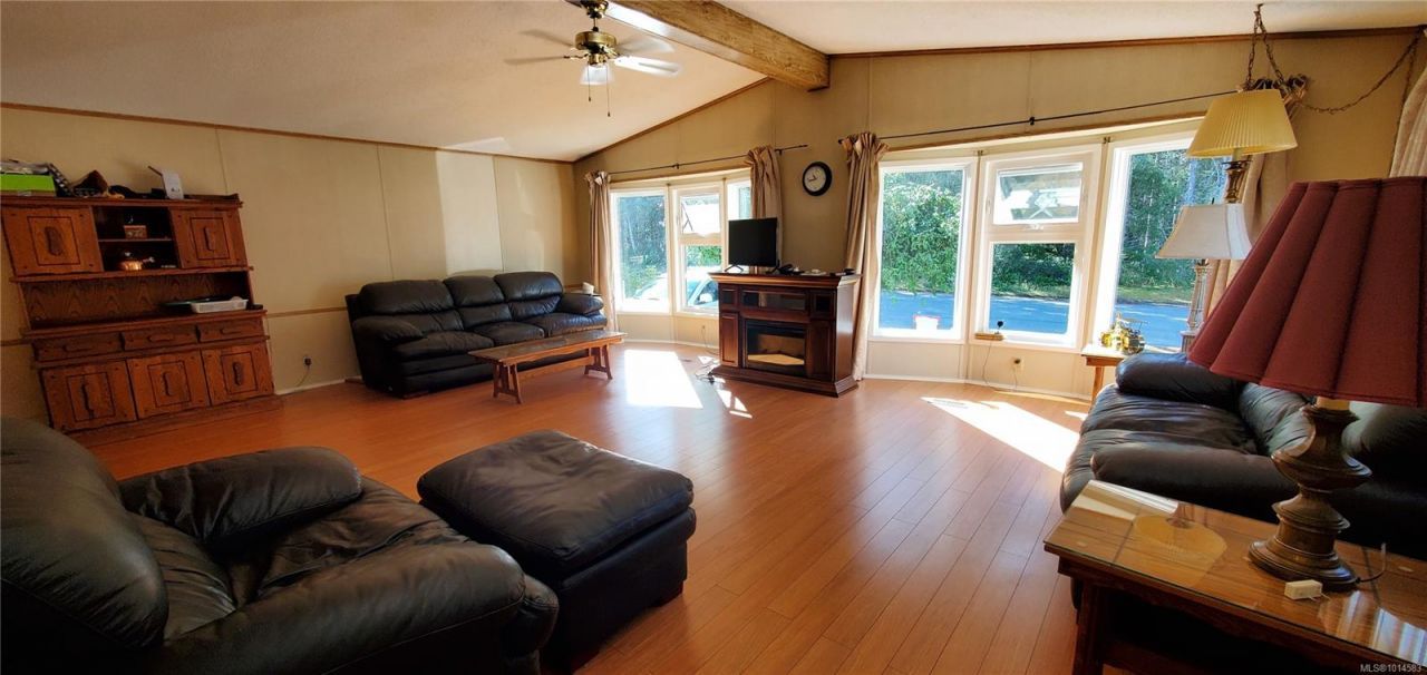 Well-maintained double-wide manufactured home on its own lot. Updates include vinyl siding and skirting, vinyl windows, and 2 sides of new fencing. This spacious home offers a bright, open living area with 3 bedrooms and 2 bathrooms, laminate and tile flooring. The primary bedroom features a walk-in closet and ensuite for added comfort. Enjoy outdoor living on the large, partly covered deck, and take advantage of the convenience of a carport. Nice garden/ yard and flat lot with garden shed. Across from quiet wooded area.